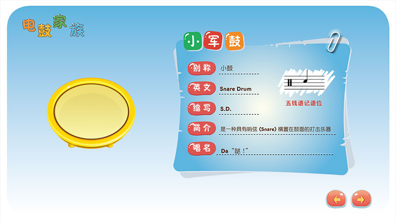 乐斯电鼓课堂采用生动形象的表现形式,不同类型的课堂小练习,更符合孩子的认知规律,极具吸引力的画面,让孩子轻松识谱认鼓,轻松掌握音乐知识,充分享受学习电鼓的乐趣。